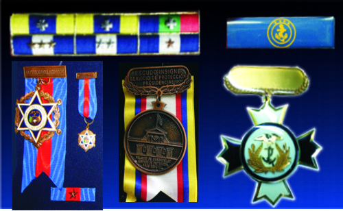 Condecoraciones en hilo y metal, medallas y condecoraciones militares metálicas en alto y bajo relieve.